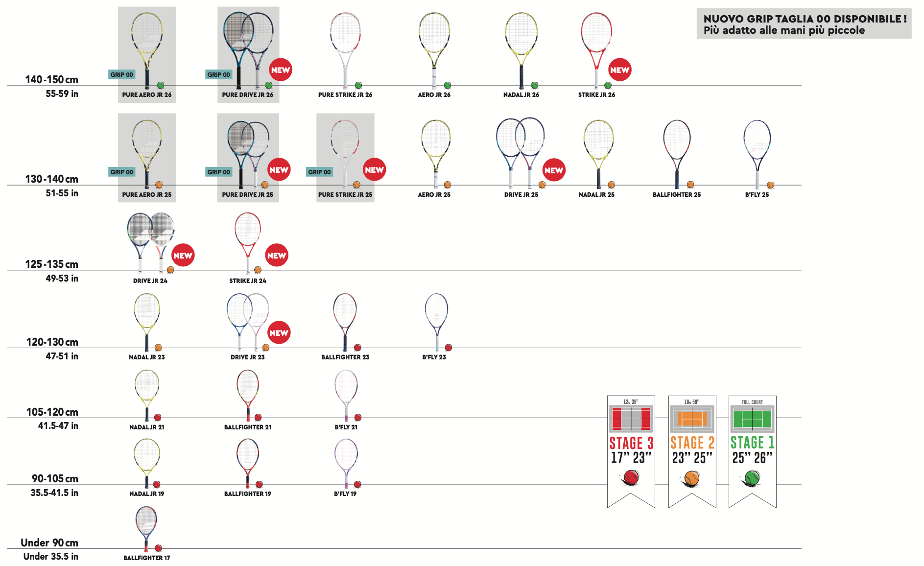 Nachfolgend finden Sie das passende Racket für Ihr Kind je nach seiner Körpergröße: