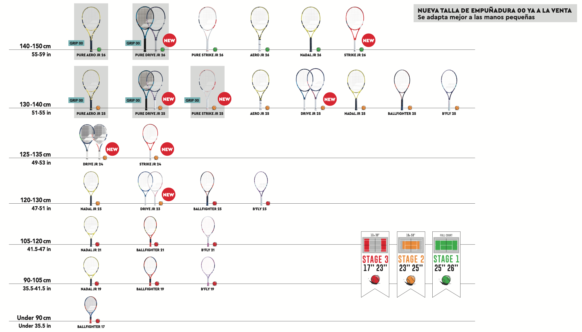 You will find, below, the racket adapted to your child according to his height:
