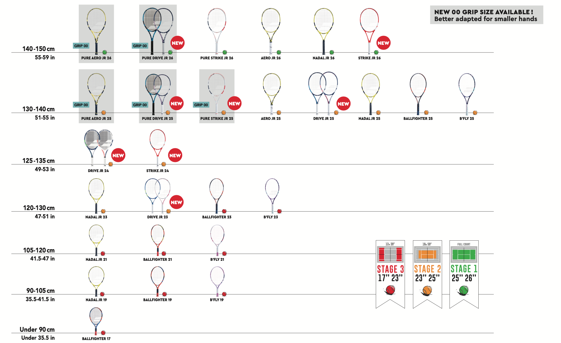 A continuación, encontrarás la raqueta adaptada a tu hijo en función de su talla: